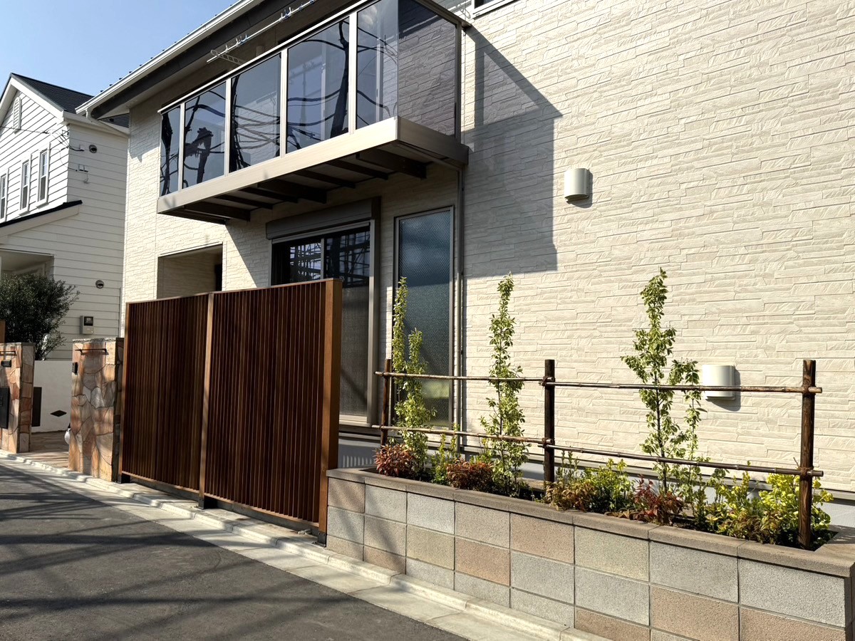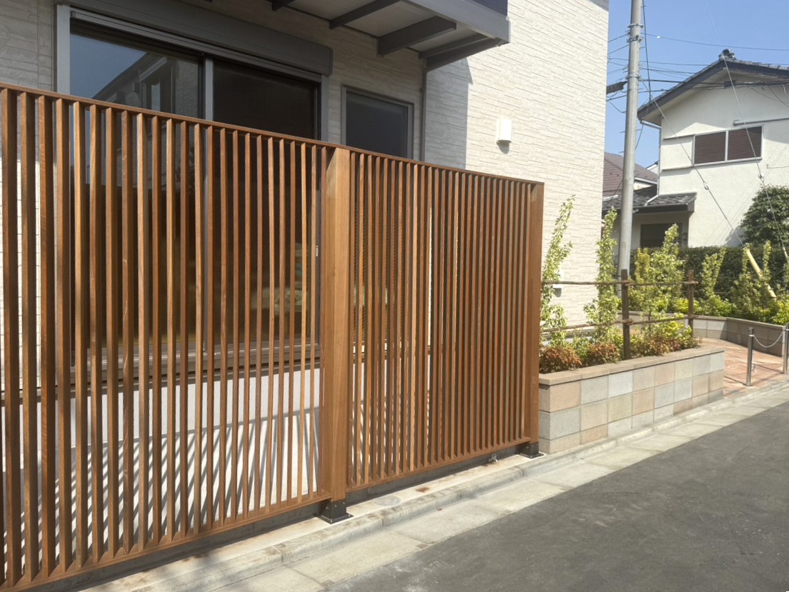 棟梁が一から造作した目隠しフェンスは、既製品にはない繊細な納まりと存在感を実現。